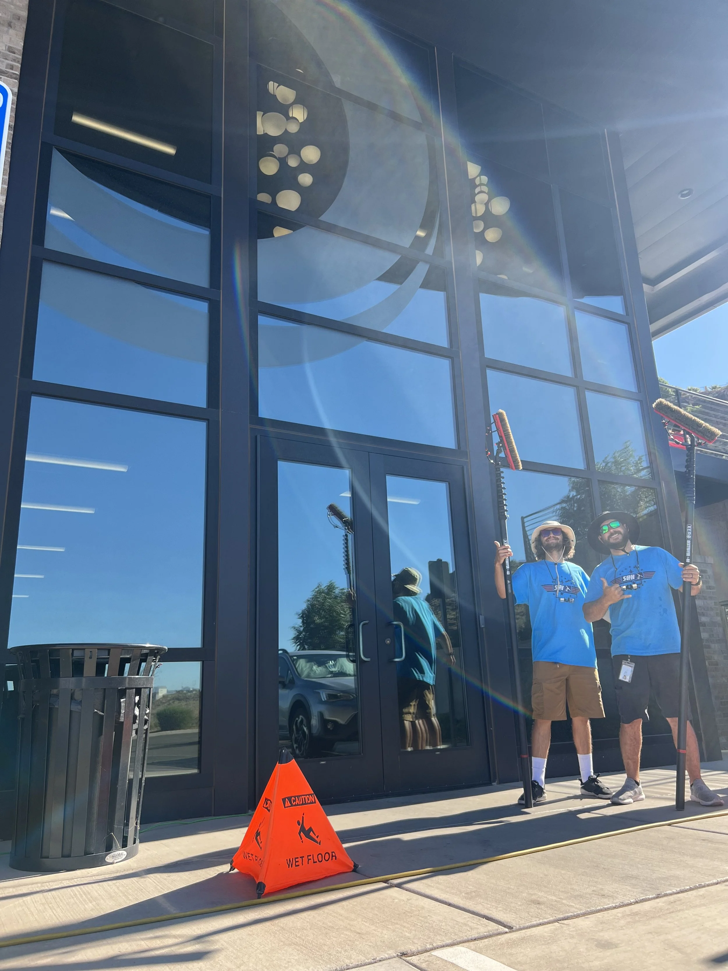#2 The glass is squeegeed clean with the best professional-grade equipment, mixed with cutting edge techniques remove 99.9% of the water, and dirt from the surface of the glass.
