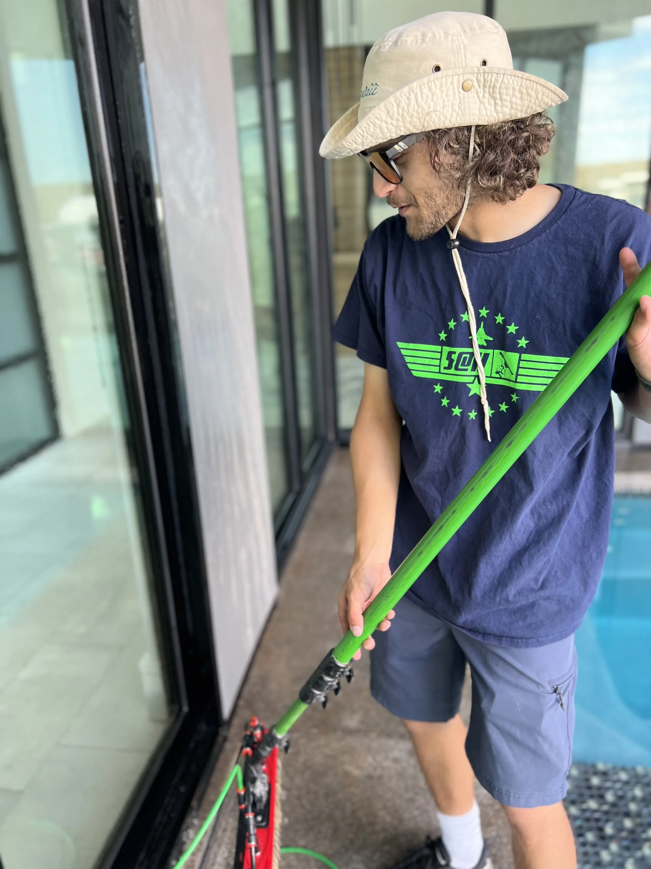 Our Exterior process consist of Water fed pole system. The windows are not squeegeed – they are left to dry naturally.